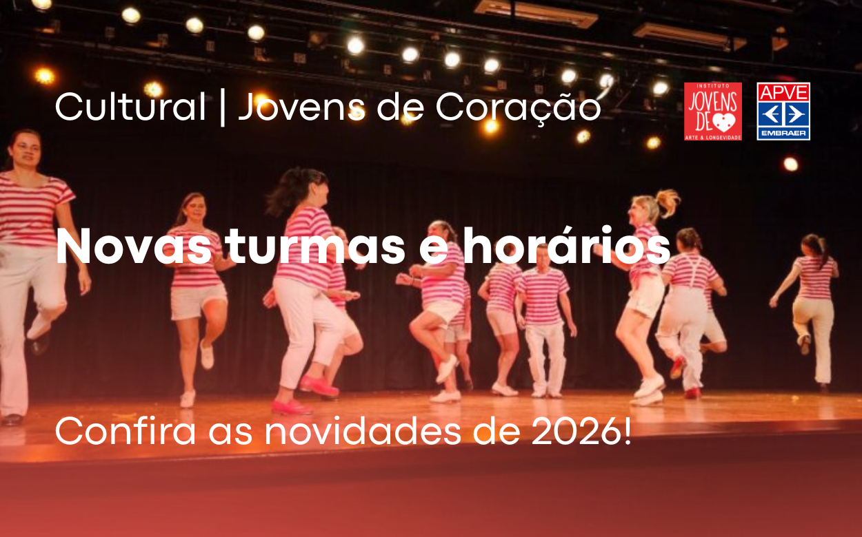 A APVE divulga os novos horários e turmas do Instituto Jovens de Coração – Arte & Longevidade para o ano de 2026.