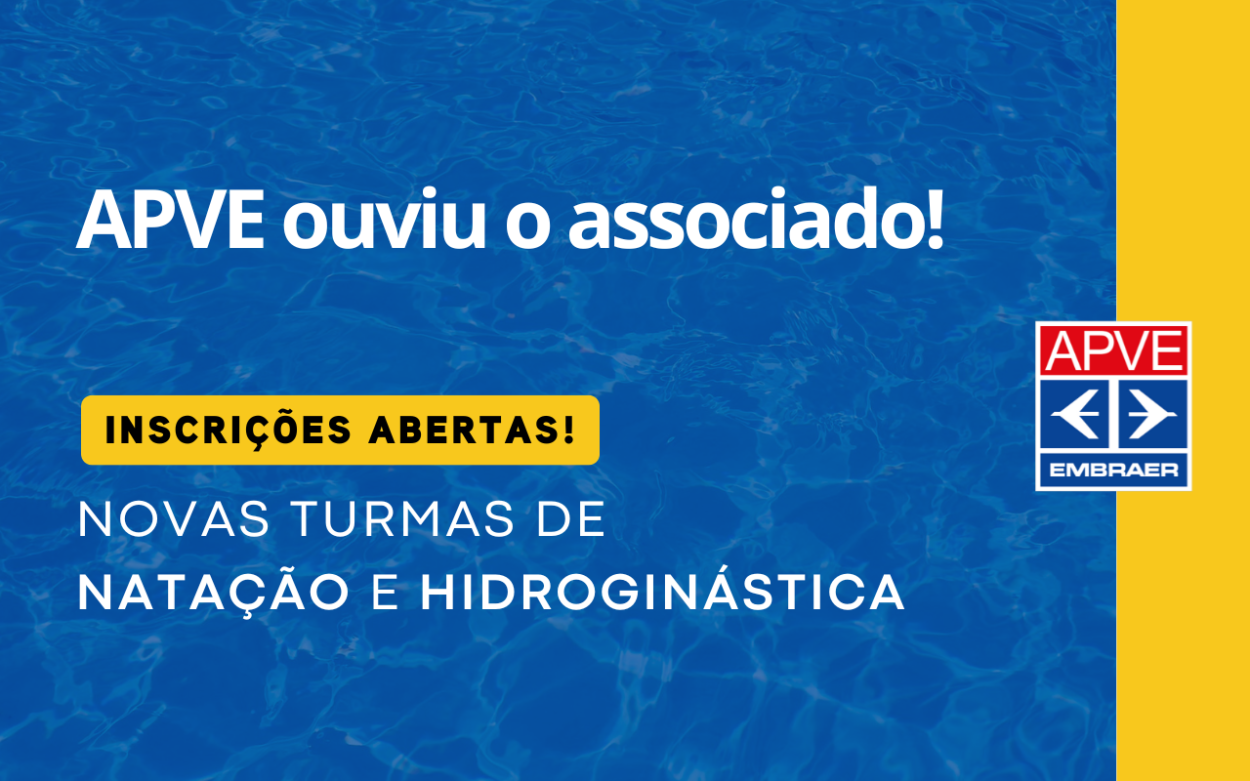 E abriu novas turmas para as aulas de Natação e Hidroginástica. Com início marcado para dia 1º de novembro, as inscrições já estão abertas e as vagas são limitadas.